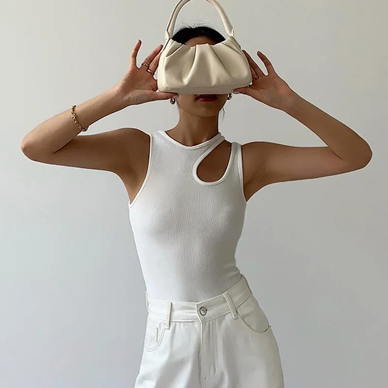 Casual y2k White Cut Out Women's T Shirt Sleeveless Slim T Shirts Female Clothing 2024 Summer Fashion crop top women camisetas