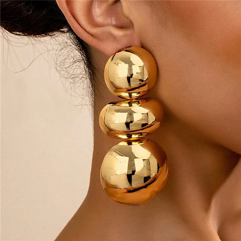 Retro Exaggerated Geometric Round Design Earrings For Women European American Style Large Earrings Party Travel Jewelry Gift