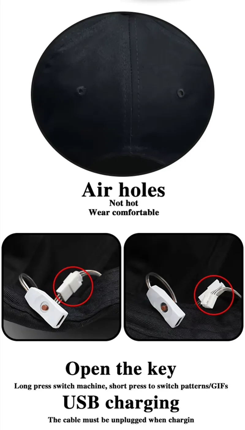 2025 New LED Cap, Multi-Language APP Control DIY Editing Light Up Cool Hat (Text, Music, Image, Drawing) For Men Women