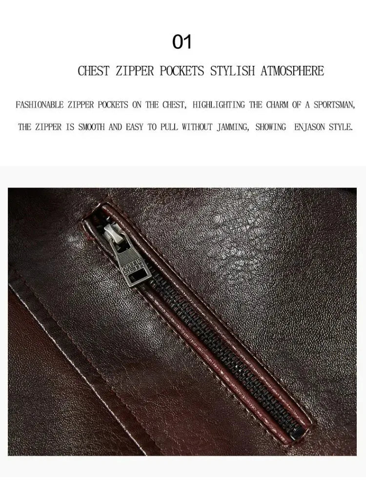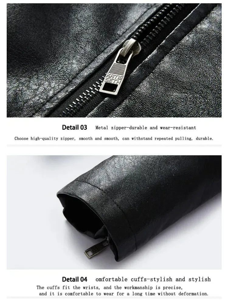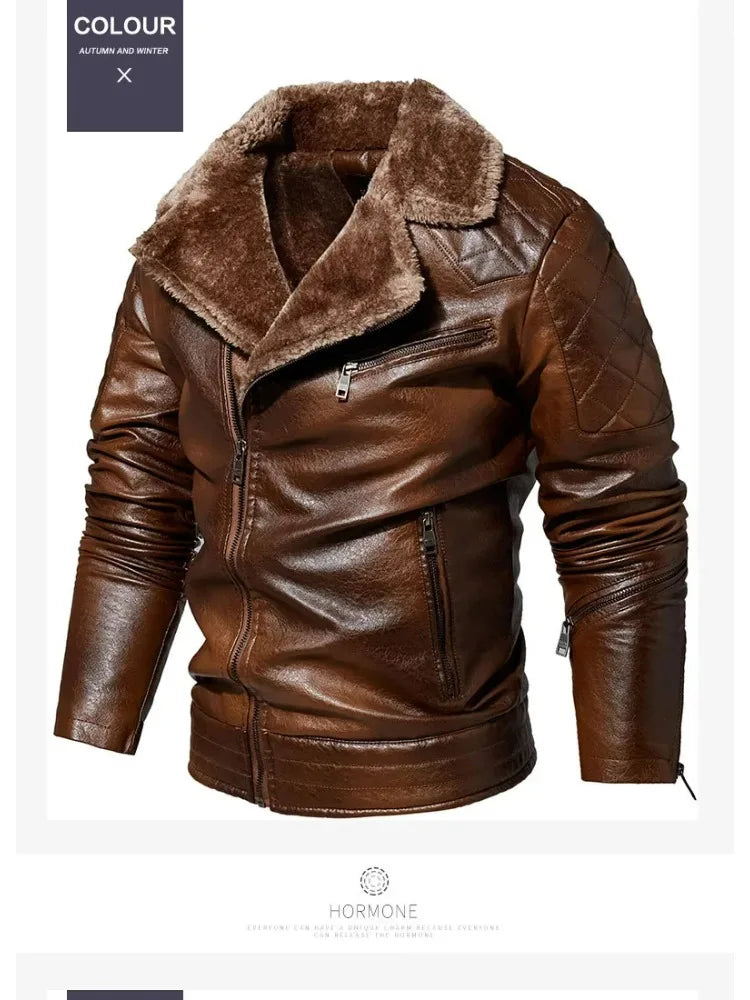 Fashion Warm Winter Mens PU Leather Jacket With Fur Collar Thicken Fleece Motorcycle Coat Casual Faux Leather Locomotive Jacket