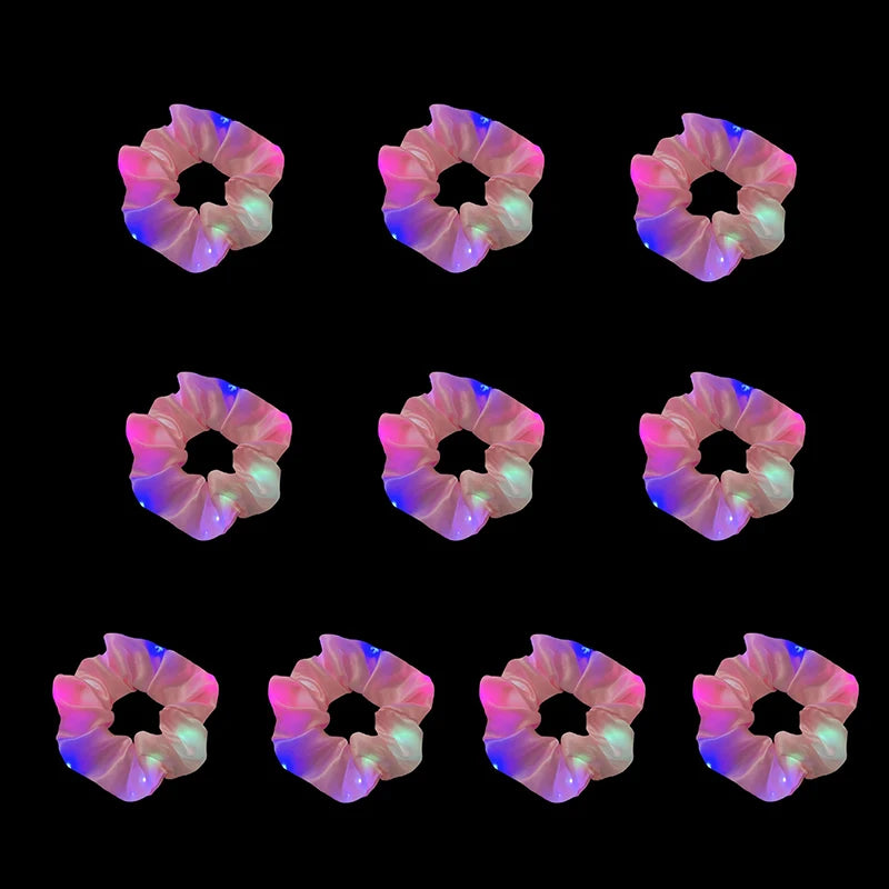 1/10 Pcs LED Luminous Scrunchies Glowing Hairband Girl Light Up Hair Scrunchy Birthday Party Headwear Supplies Hair Accessories