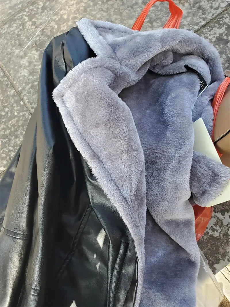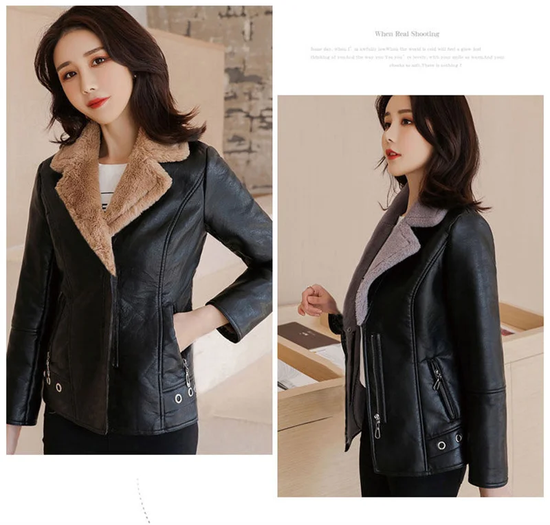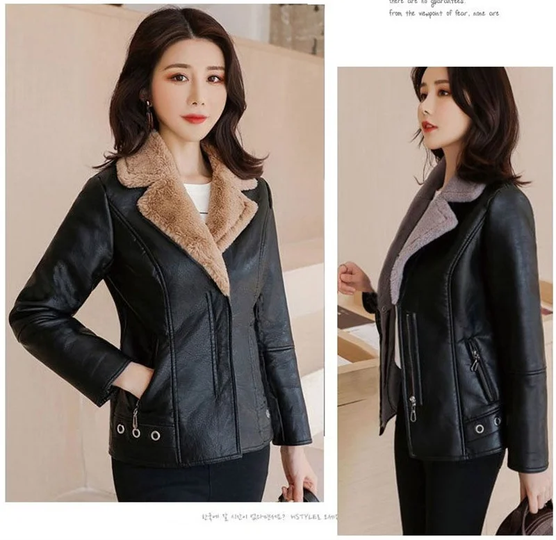 2022 New Winter PU Leather Jacket Women Short Blazers Coat Fleece Double-faced Fur Leather Outerwear Lady Slim Suit Tops Jackets