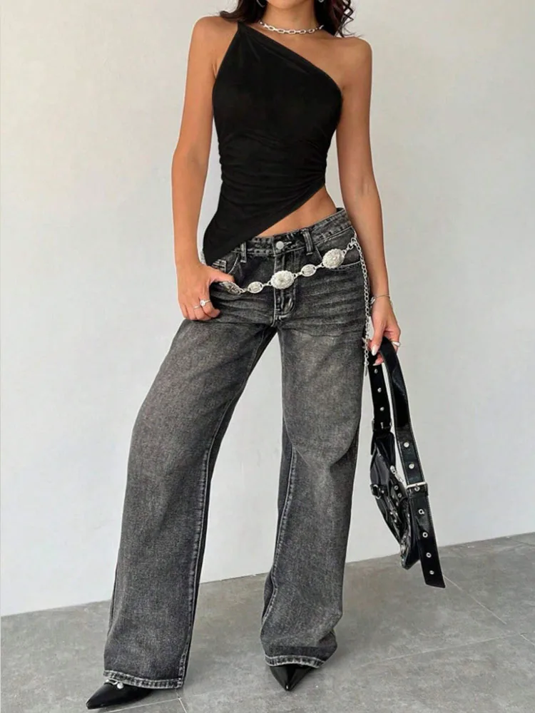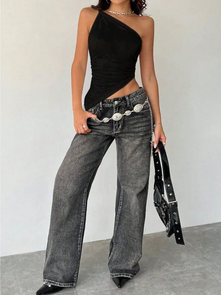 2025 Fashionable Women's Casual T-Shirt Solid Color Single Shoulder Asymmetrical Slim Fit One-Piece Neck Top