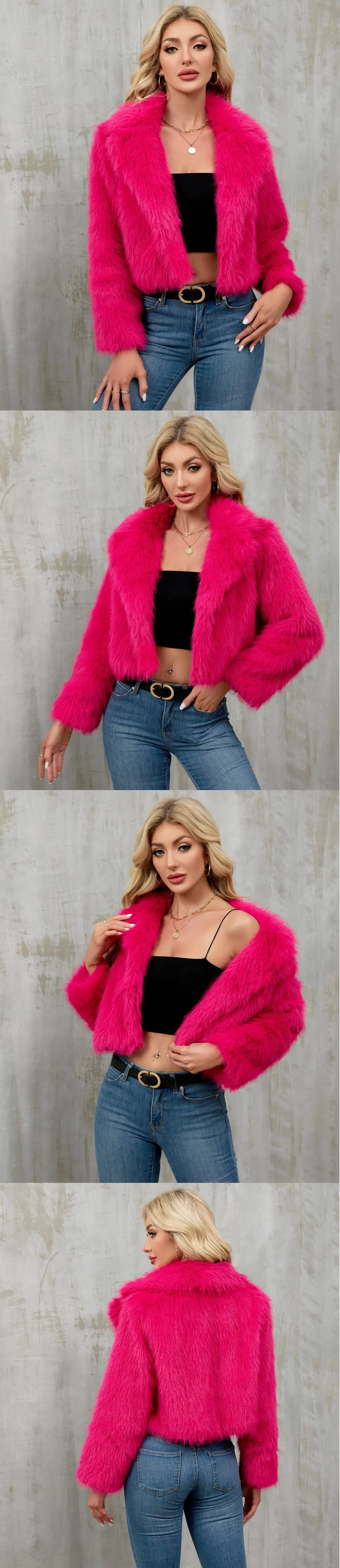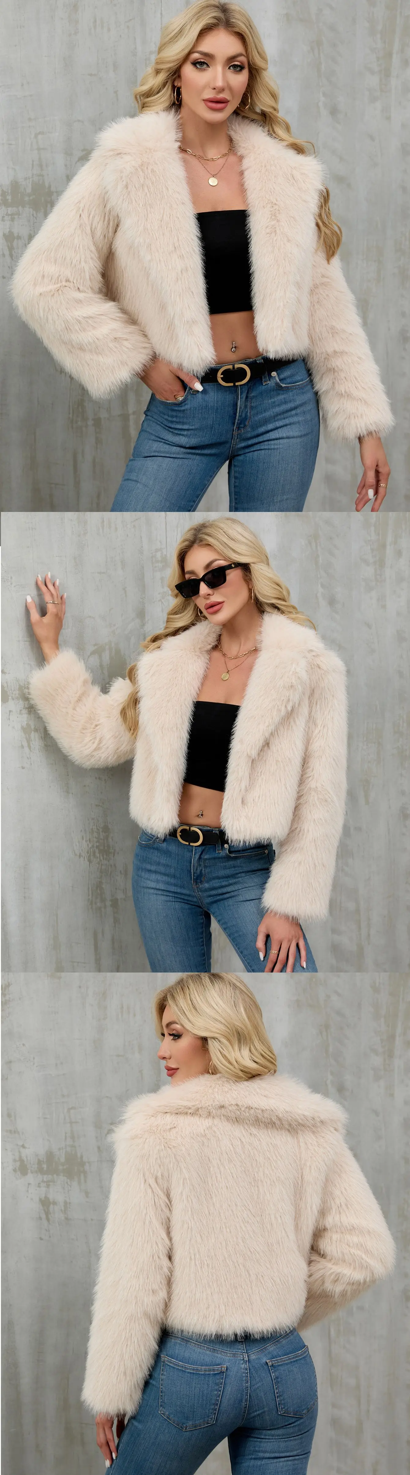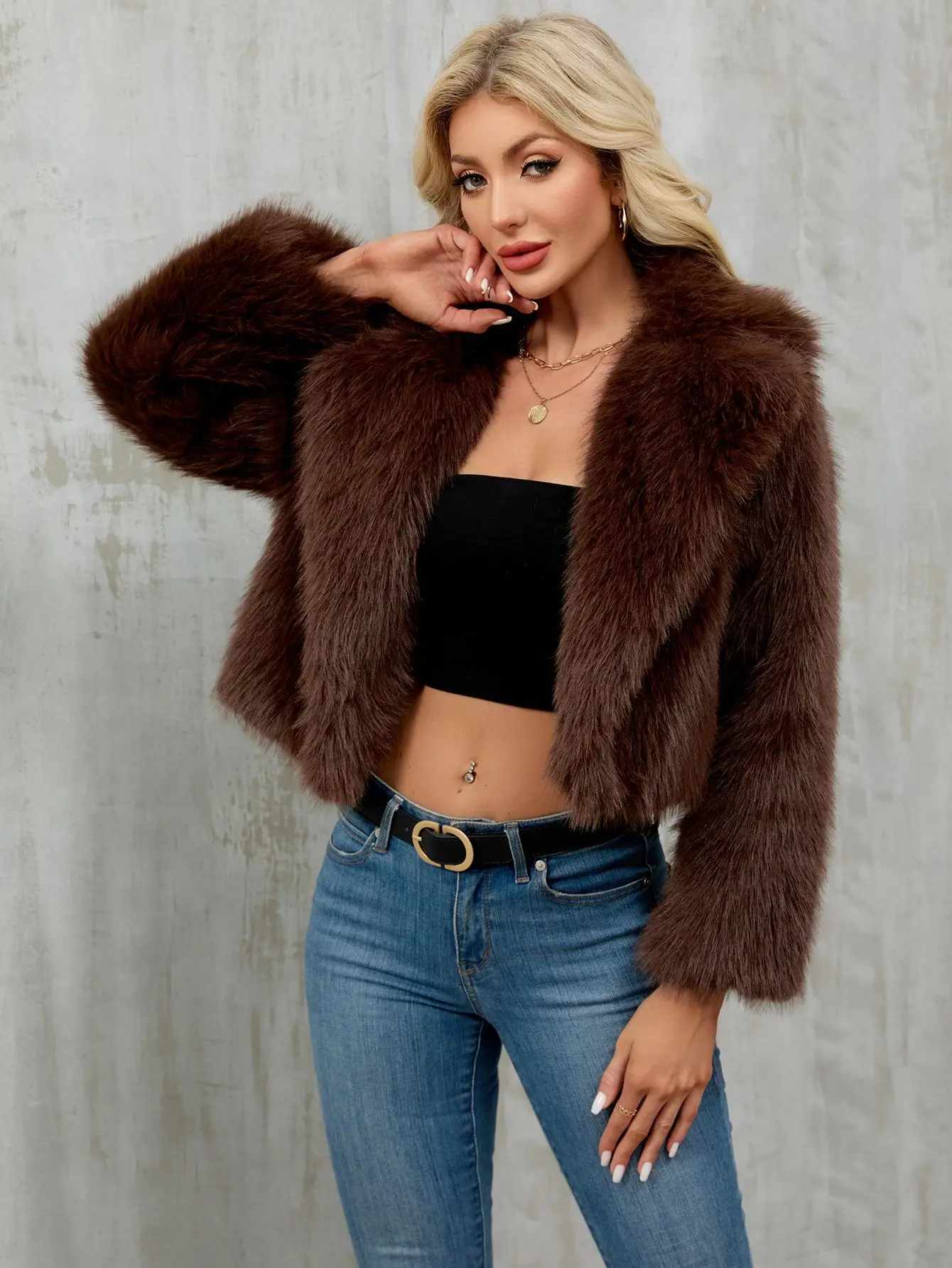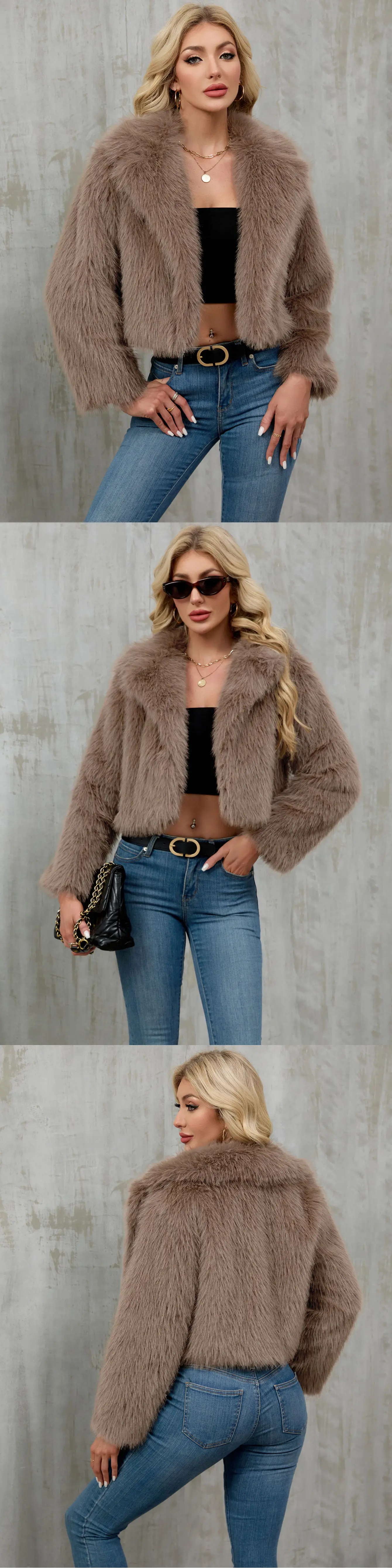 2025 Female Winter Brown Faux Fur Coat For Women Casual Long Sleeve Fluffy Plush Jacket Lady Solid Thick Fake Fur Warm Cardigan