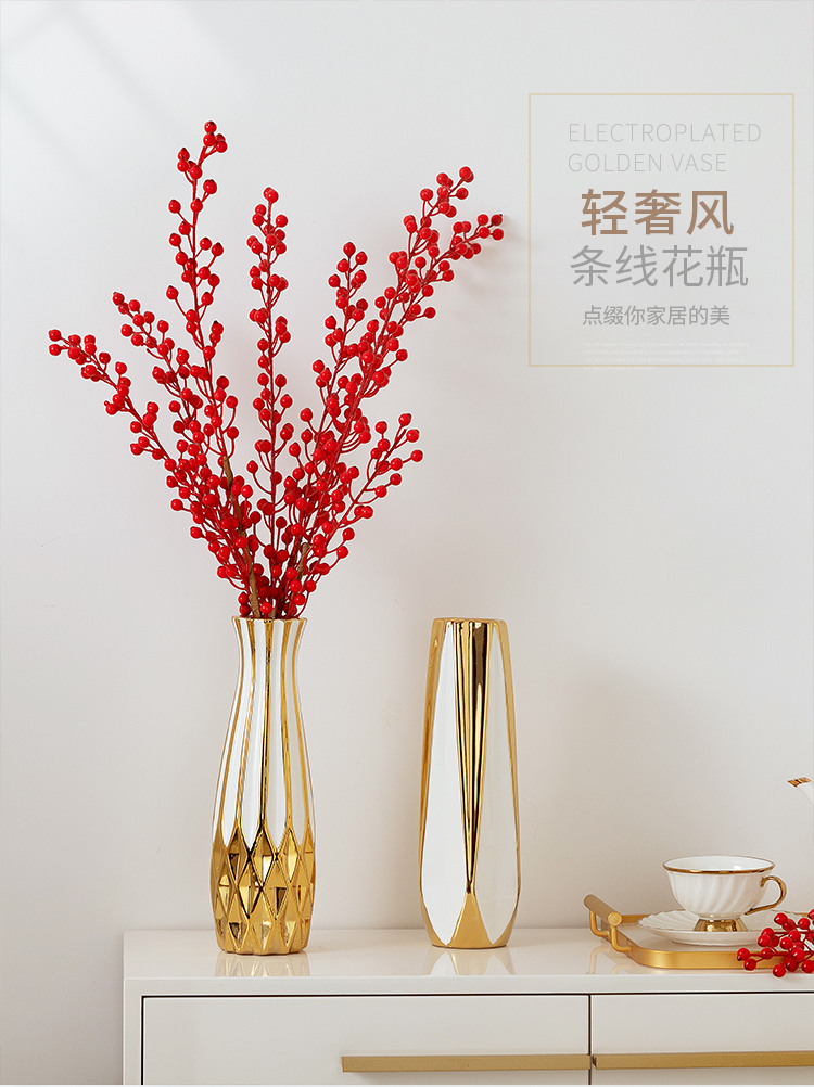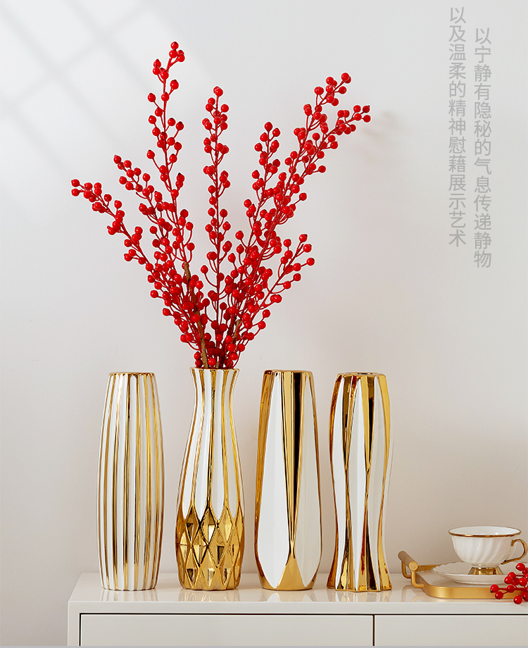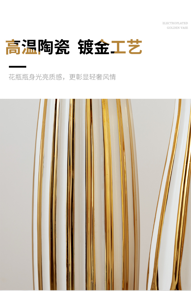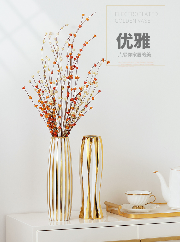 30cm Water Gold Luxury Ceramic Vase for Home Living Room Luxury Decoration Study Entrance