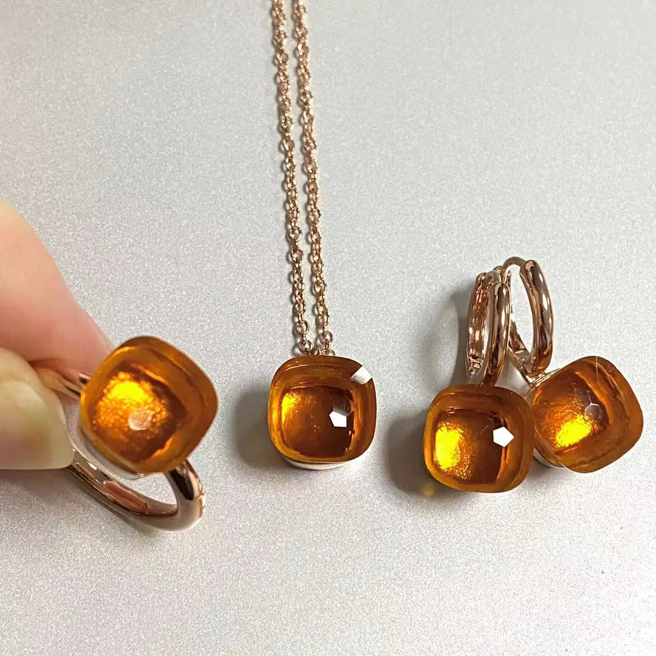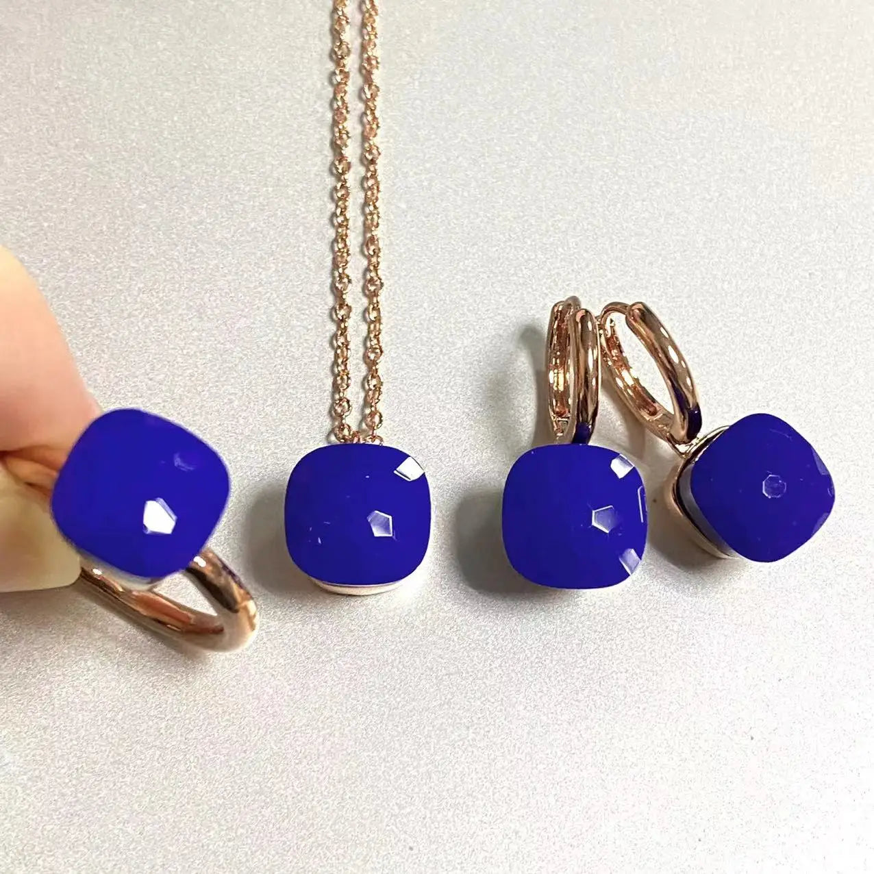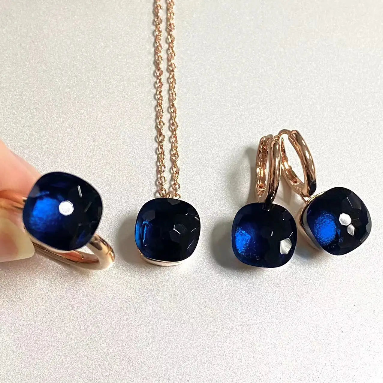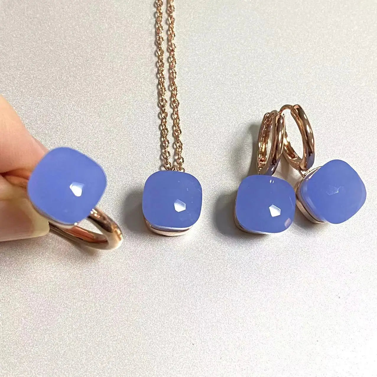 3Pcs/Set Women Ring Earrings Necklace Jewelry Set 34Colors Pink Crystal Jewelry Set Rose Gold Plated Jewelry