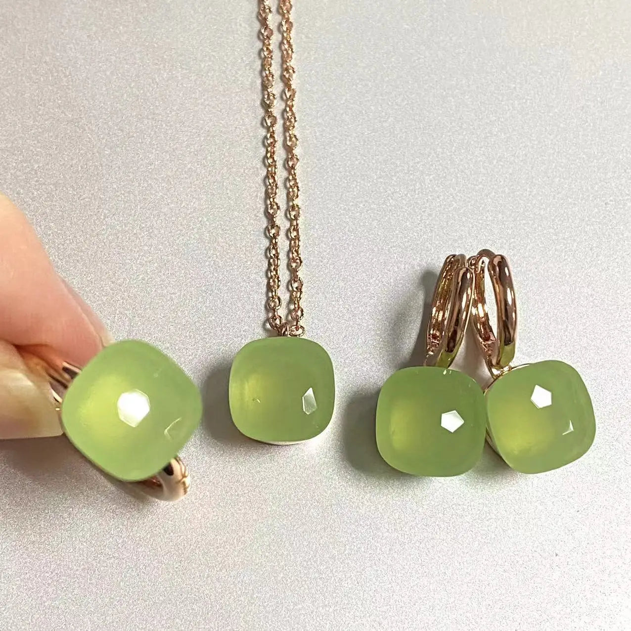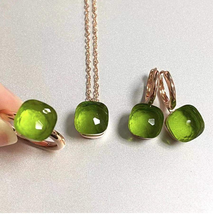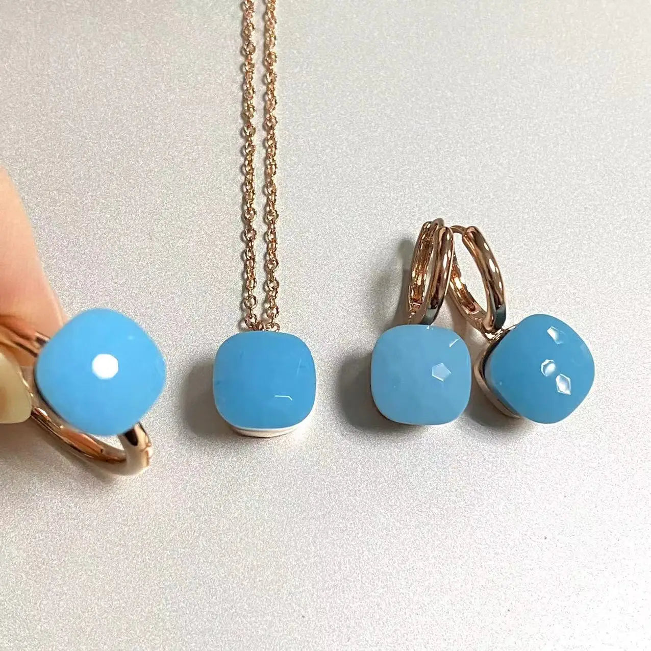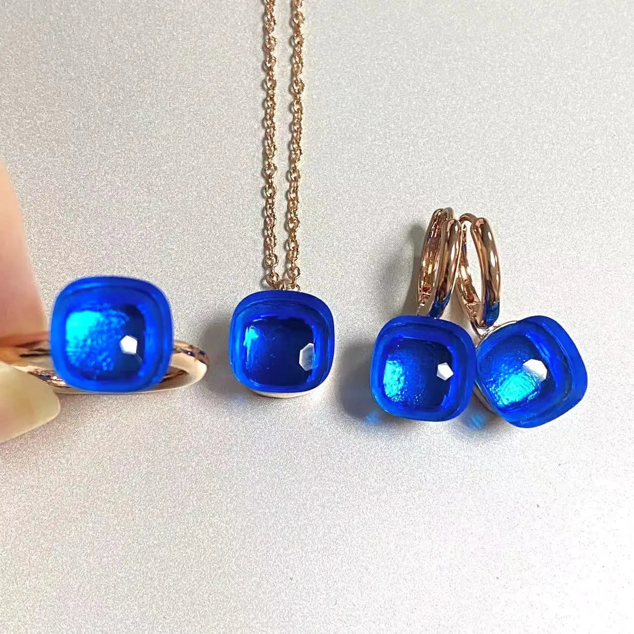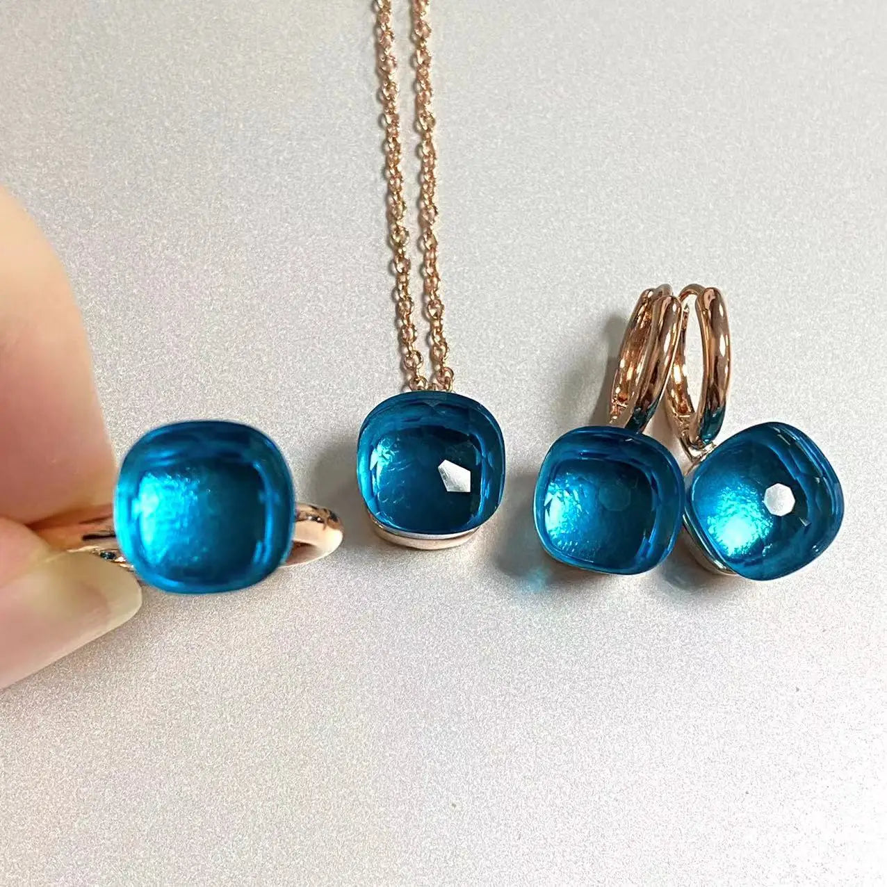 3Pcs/Set Women Ring Earrings Necklace Jewelry Set 34Colors Pink Crystal Jewelry Set Rose Gold Plated Jewelry