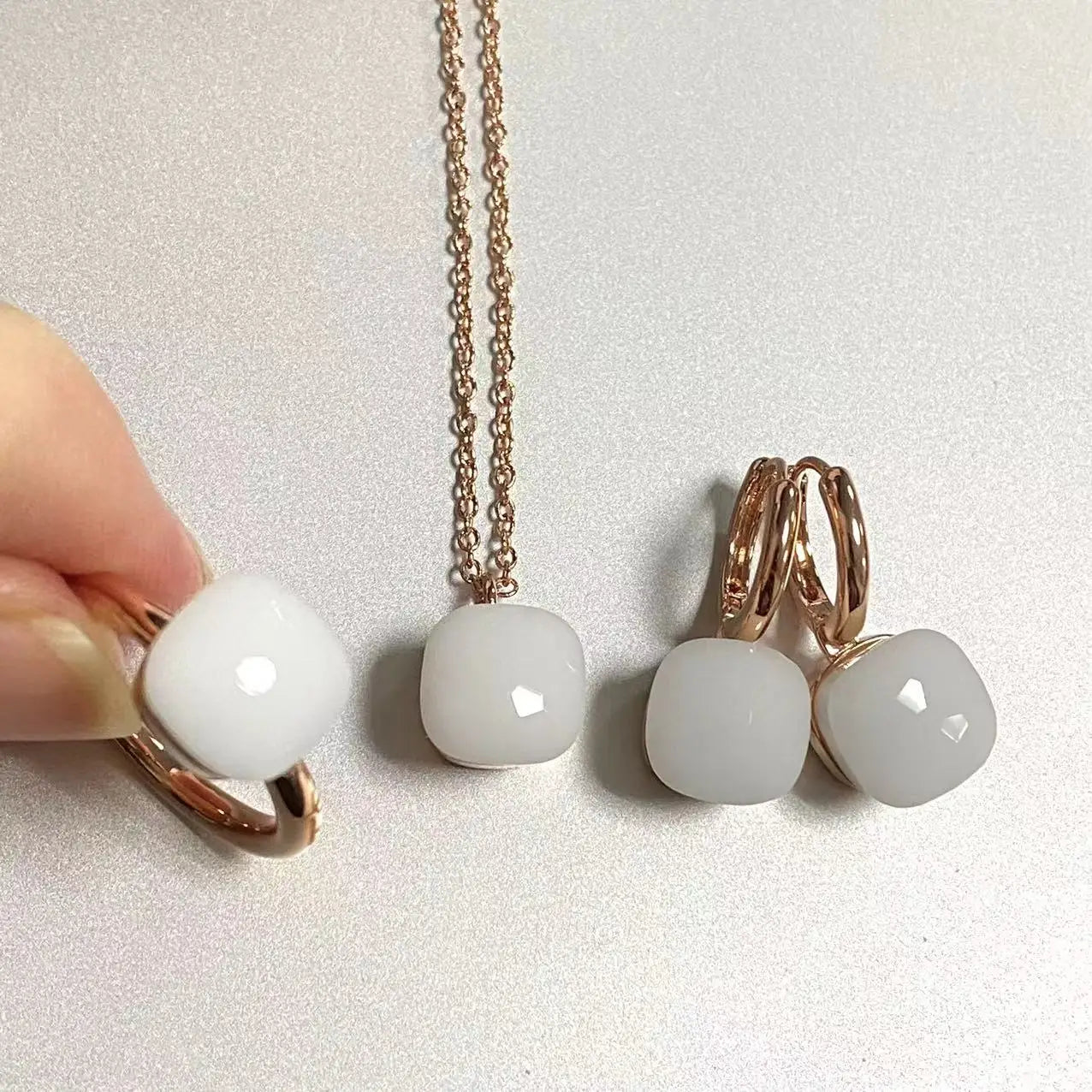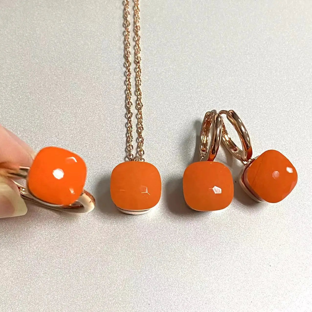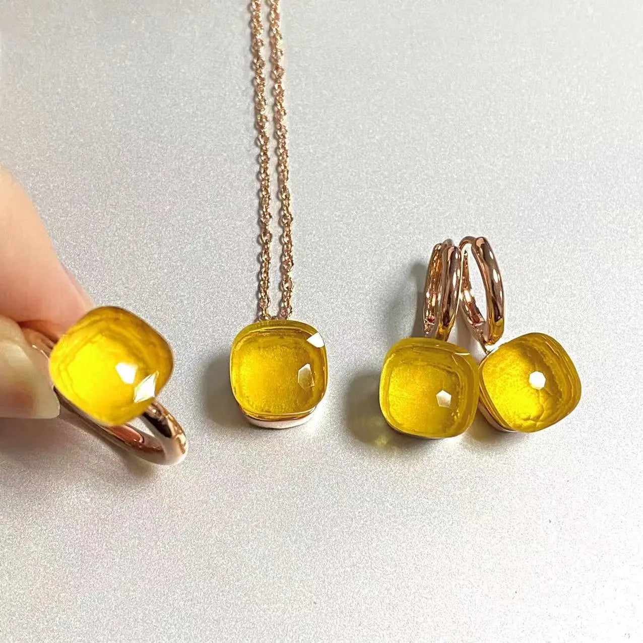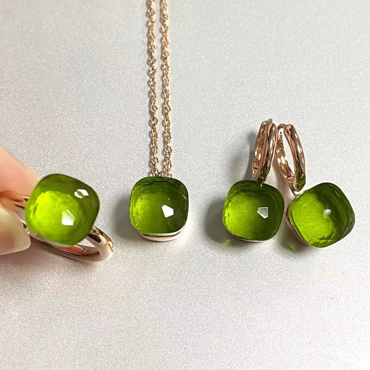 3Pcs/Set Women Ring Earrings Necklace Jewelry Set 34Colors Pink Crystal Jewelry Set Rose Gold Plated Jewelry