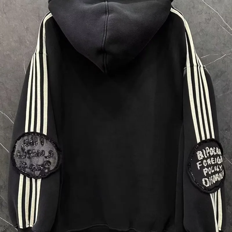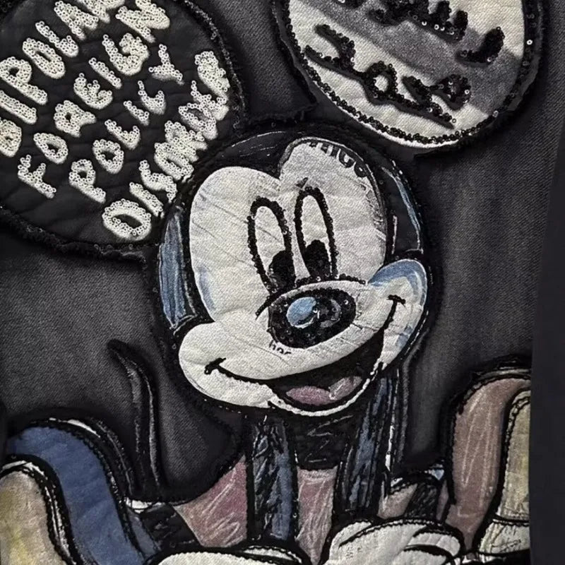 Autumn Winter Oversized Hoodie Vintage Hot Stamping Heavy Craft Mickey Patch Embroidery Hooded Long Sleeved Sweatshirt Kpop Tops