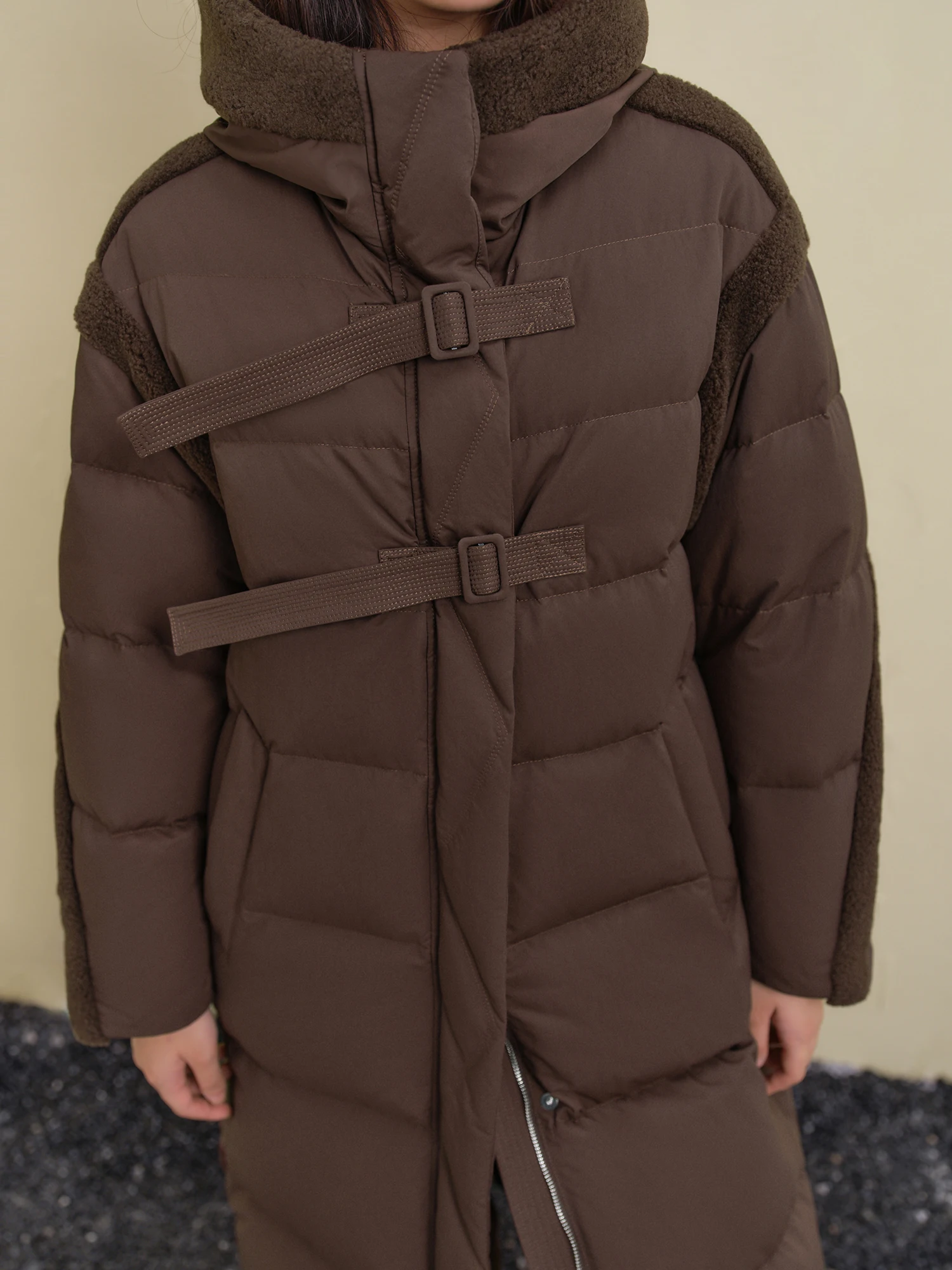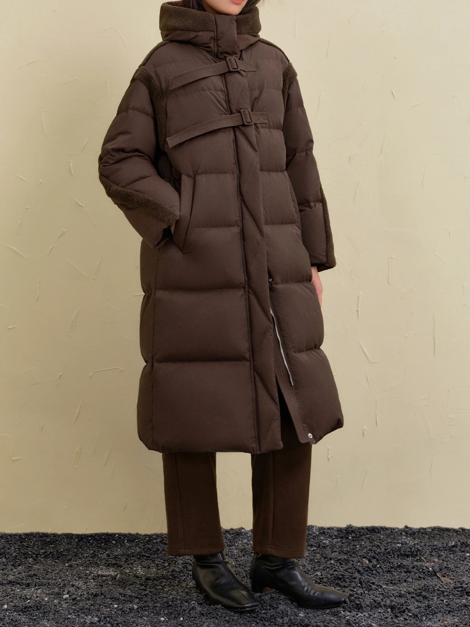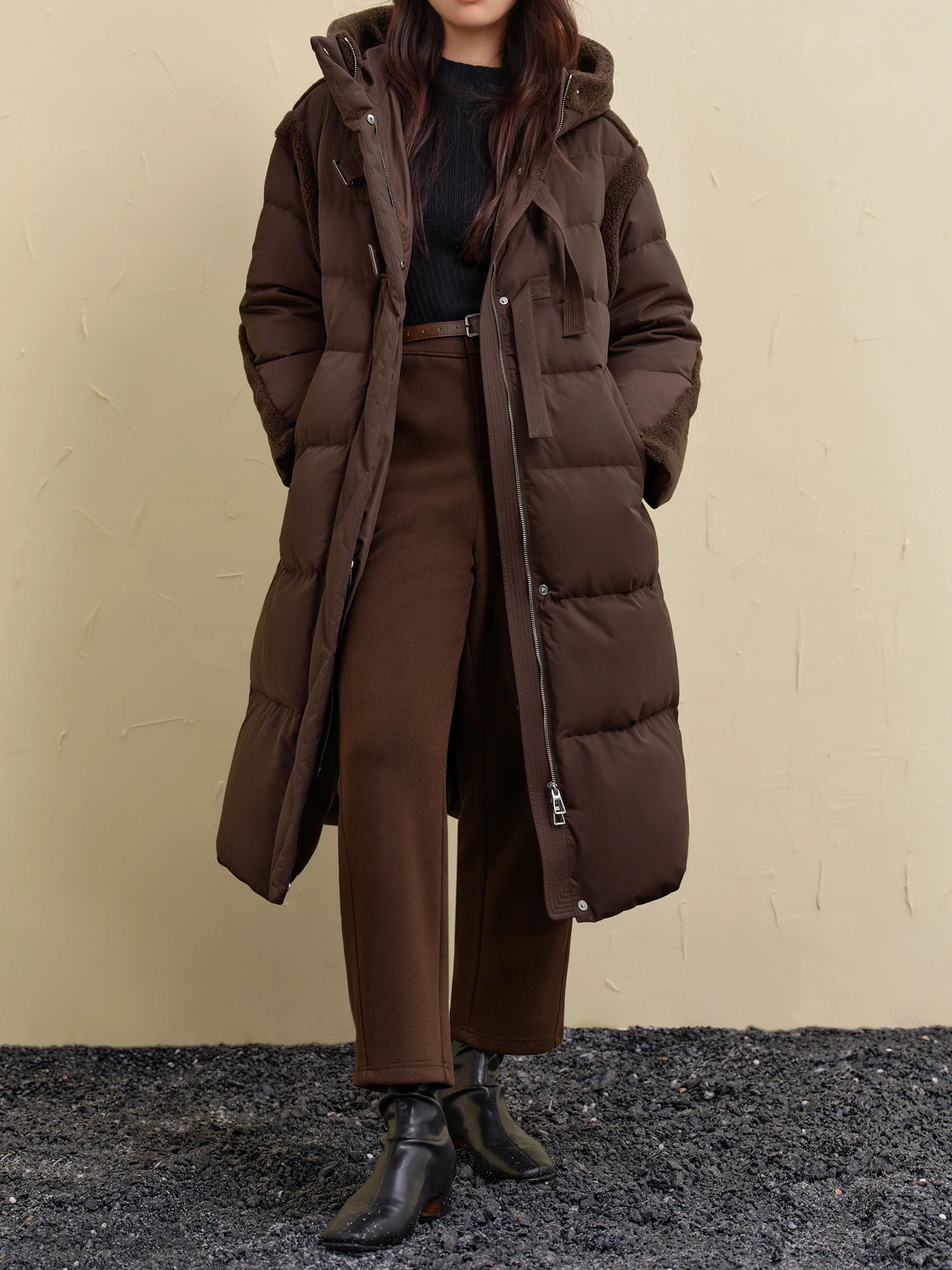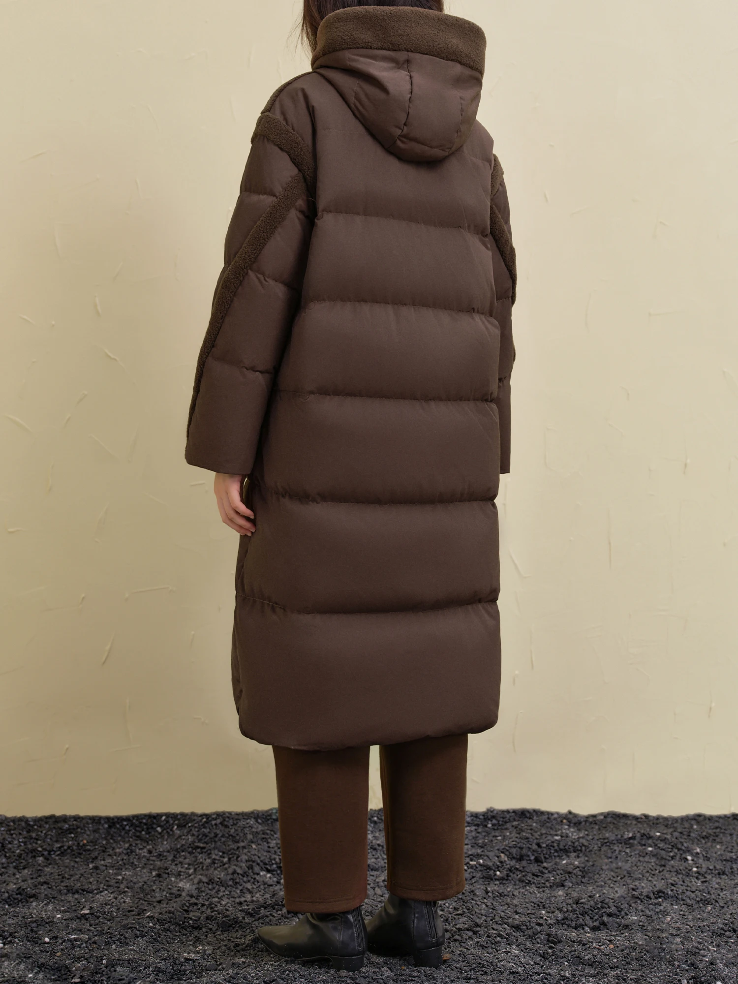 DUSHU 192G Filling Amount Plus Size Long Down Coat For Women 2024 Winter New Design Warm Thick Brown Chic Down Jacket 24DS84095
