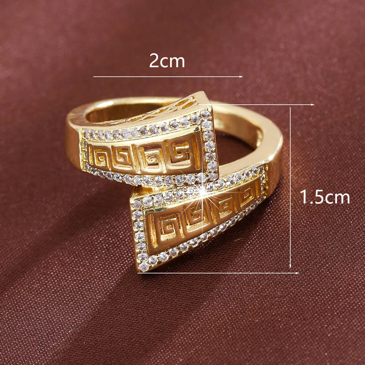 European American style retro patterned ring with zircon inlay fashionable geometric ring for daily wear