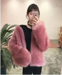 Fashion Contrast Multi color Faux Fur Coat Long Hairy Shaggy Outwear Women Autumn Winter Short Jacket Coat Tops
