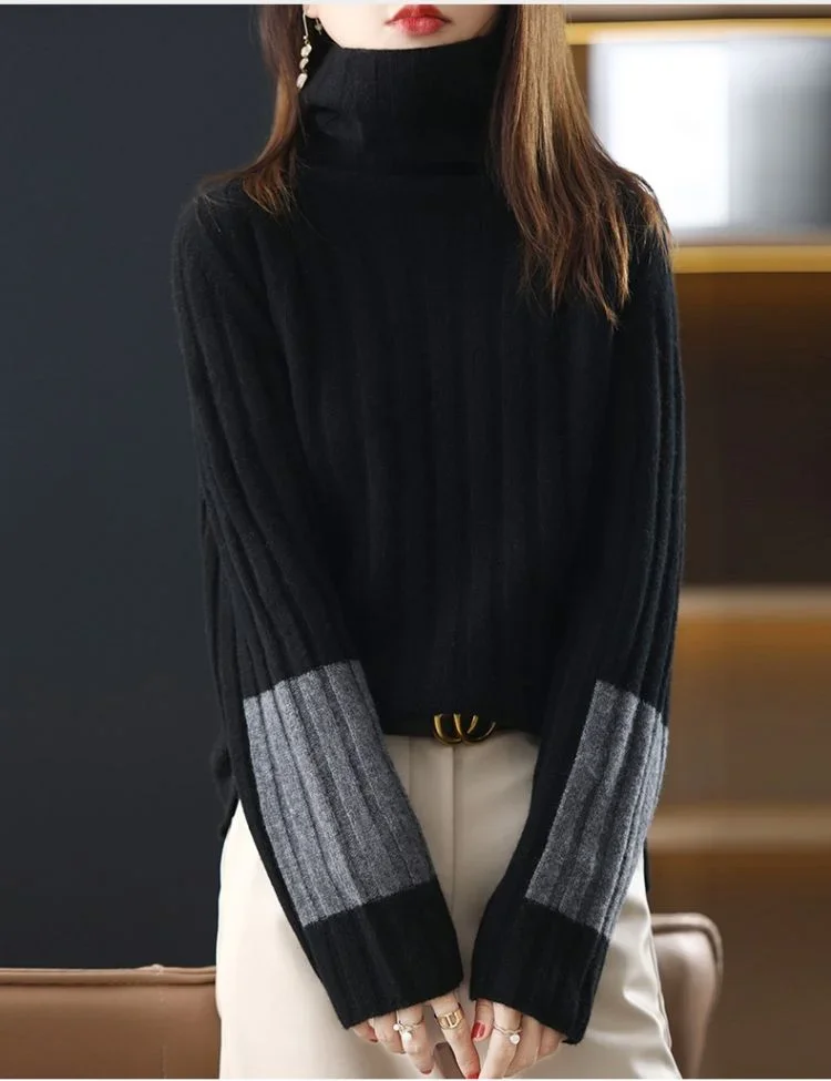 High Neck Sweater Loose and Slim Colored and Warm Knitted Sweater Autumn and Winter New Bottoming Shirt Outerwear Top Women