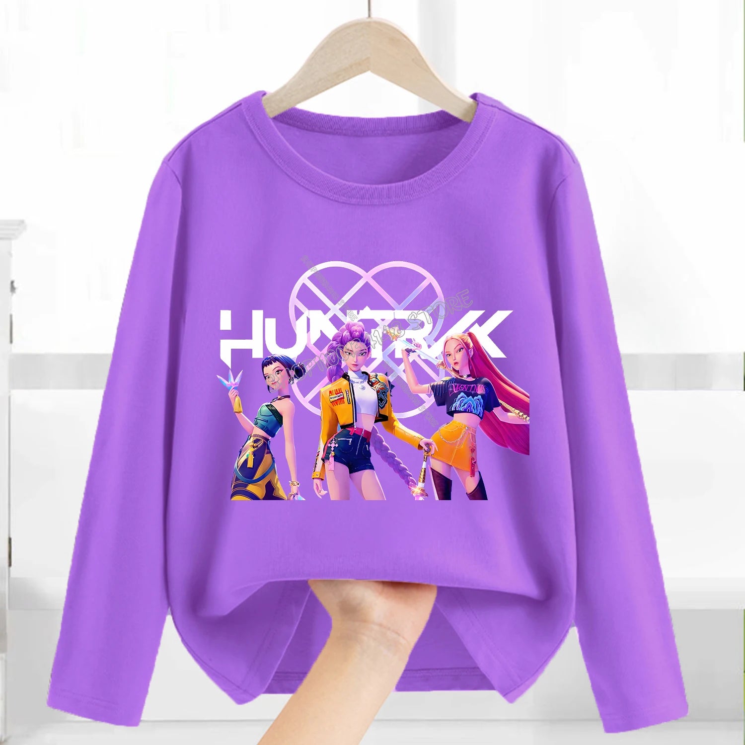 Kpop Demon Hunters Long Sleeve for Children Cartoon A-Z Letter Clothing Kids Purple Caftan Clothes Girl Round Collar Blouse Gift