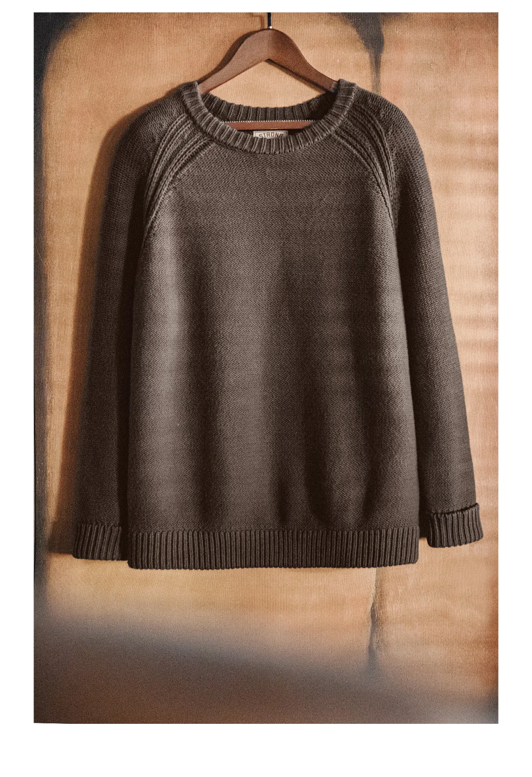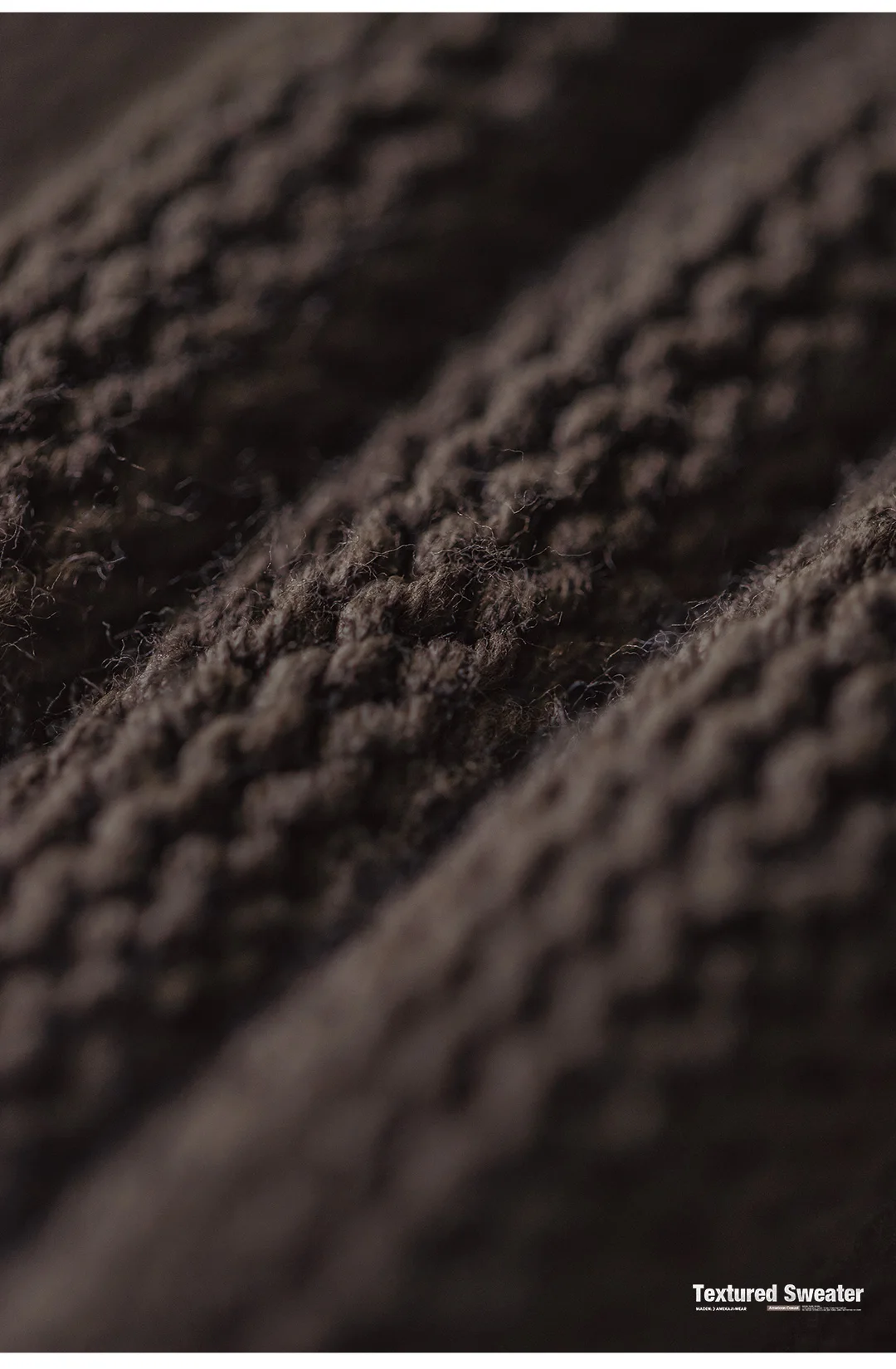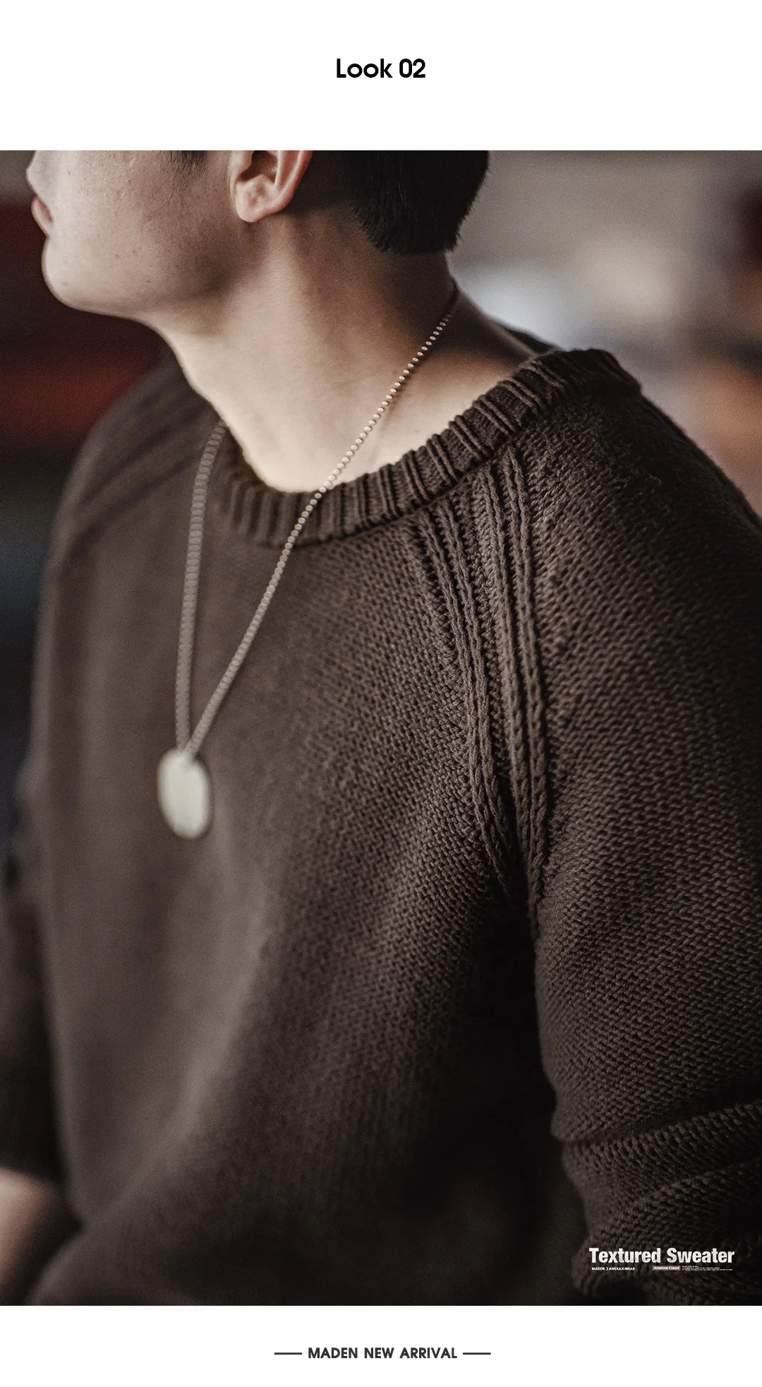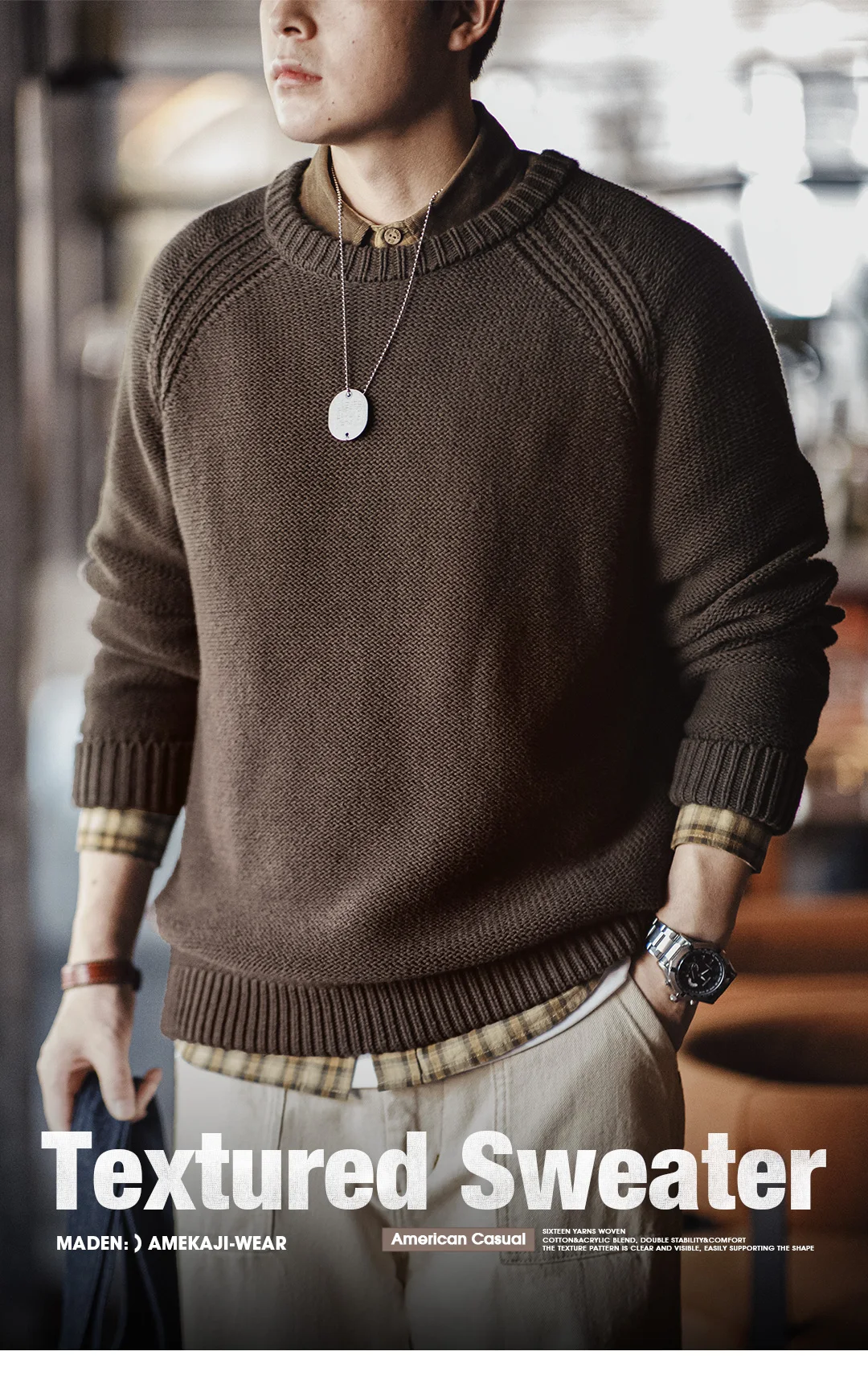 Maden New Vintage Heavyweight Knitted Crew-neck Sweater Brown Warm Pullover Men's Versatile Top for Autumn and Winter Knitwear