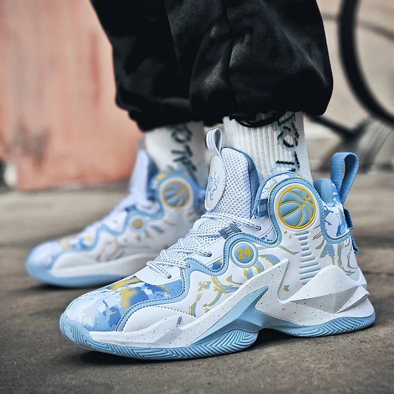 Men Basketball Shoes Soft Sole Cushioning Anti-Slip Sports Shoes Flat Comfortanle High-top Leather Basketball Boots for Man