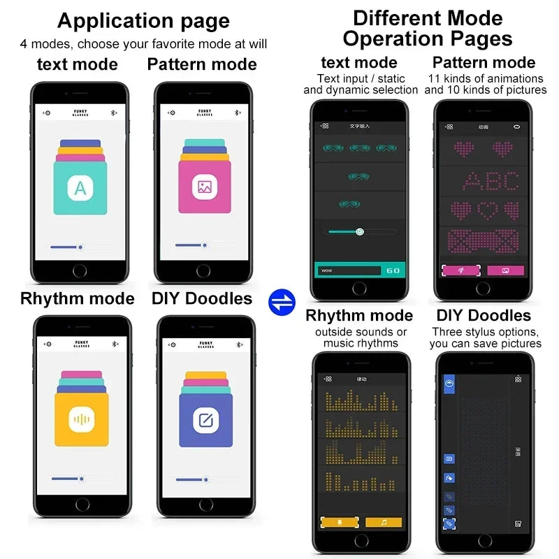 Bluetooth LED Glasses DIY Multilingual Text Graffiti RGBW/RED/Green Color for Halloween Party Rave Music Festival Glow Glasses