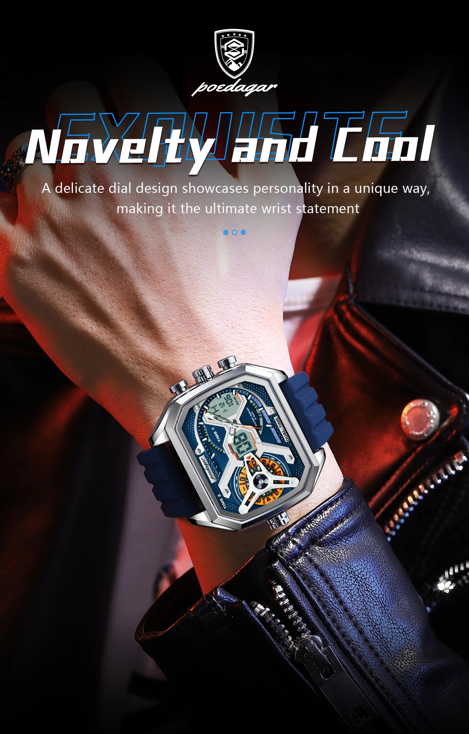 POEDAGAR Top Luxury Men Clock LED Calendar Week Luminous Man Wristwatch Electronic Rectangle Silicone Strap Quartz Men's Watches