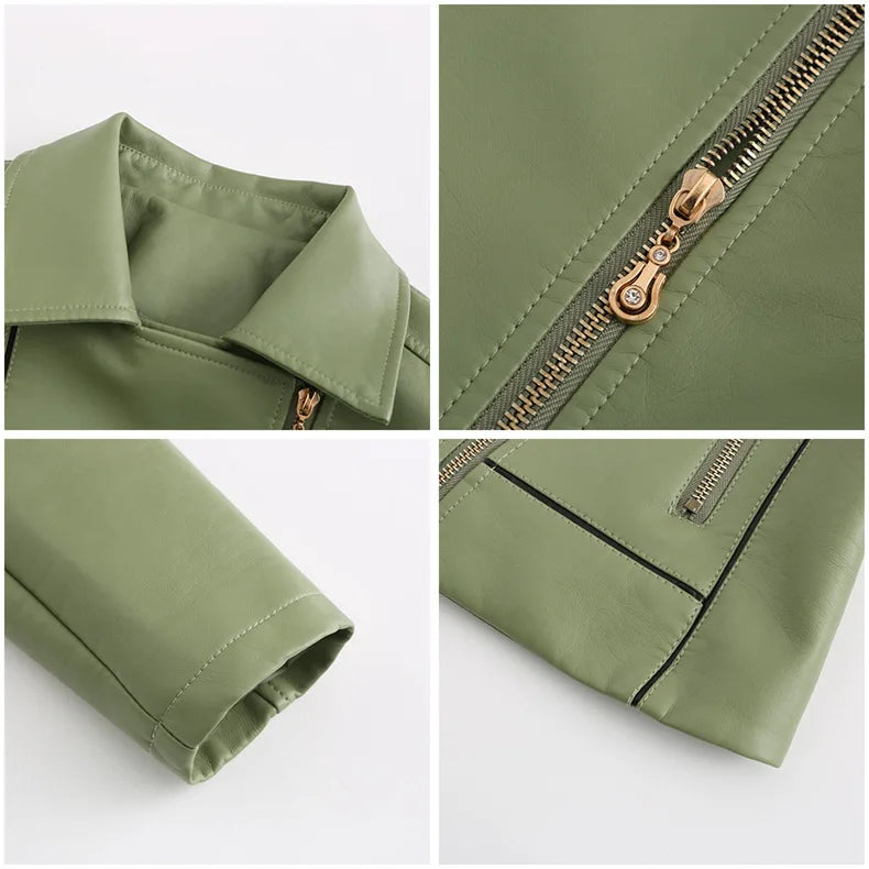 Red PU Faux Leather Jacket Women fashion Casual Biker Jackets Outwear Female Tops spring and autumn Black Leather Jacket Coat