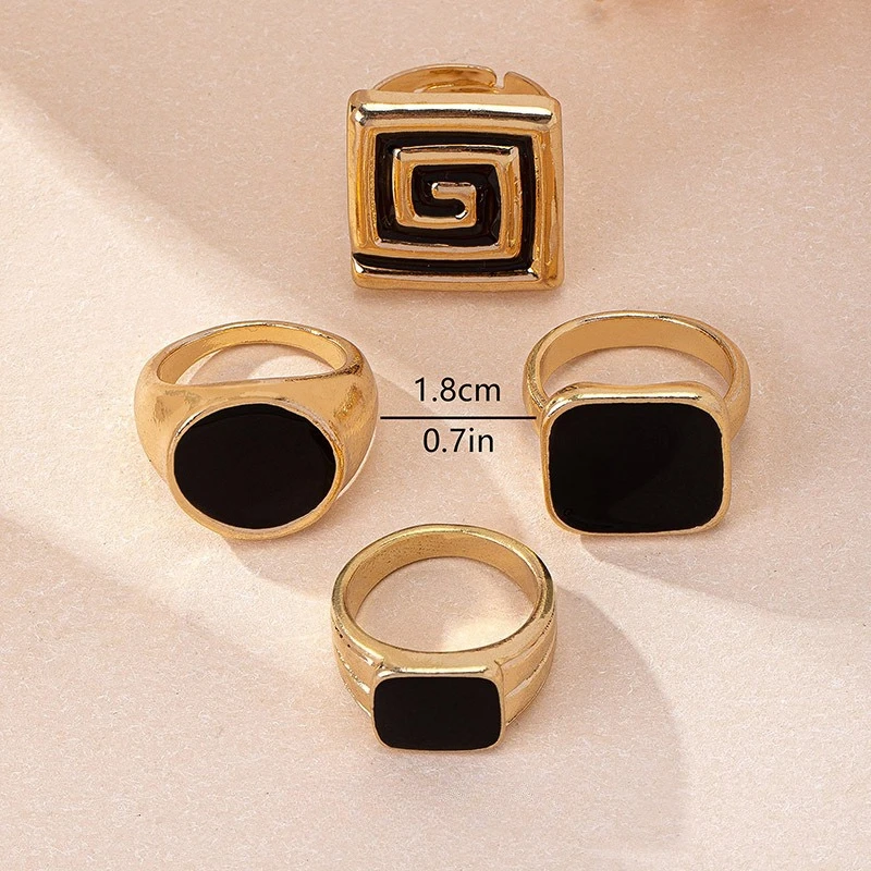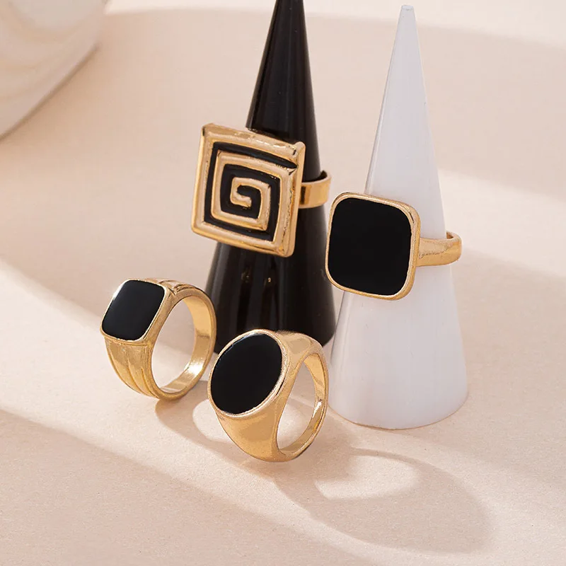 Round and Square Black Enamel Glaze Ring Women Girls Product Fashion Jewelry Hot Sale Party Gift 2025 New Style