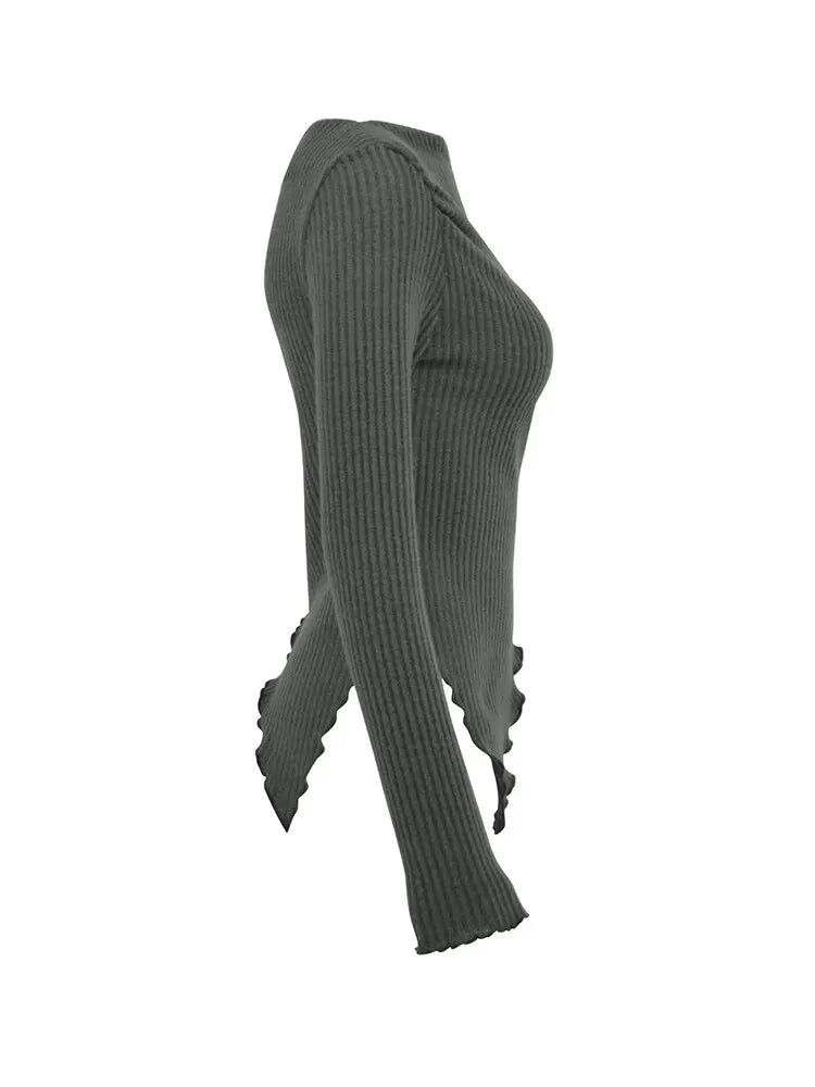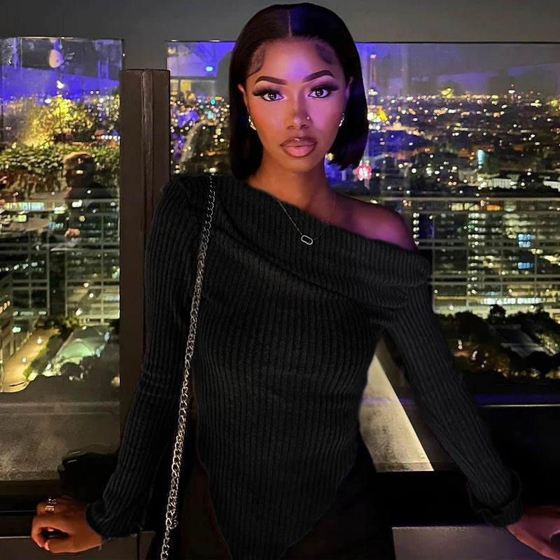 Sexy Asymmetrical Tees Women T-shirt Solid New Autumn Streetwear Long Sleeves Crop Top Fashion Casual Bodycon T-shirts Female