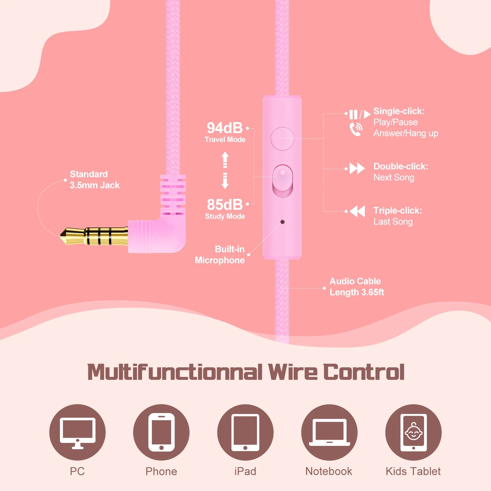 Feature 11: Tangle-free cable wired headphones for children