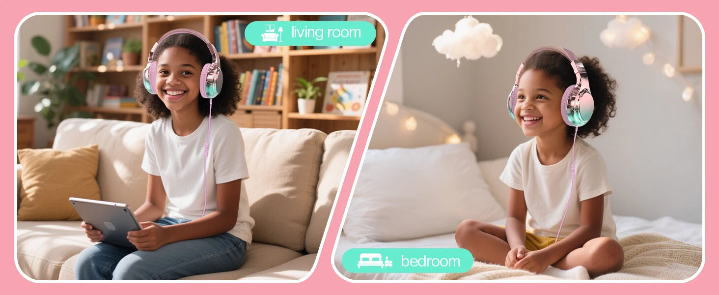 Kids Headphones: Connect any device including smartphones, tablets, and computers via 3.5mm jack to enjoy high quality sound for entertainment and/or education. Listen to music, watch movies, TV, and YouTube, or use for remote learning, virtual classes, audiobooks, and more.