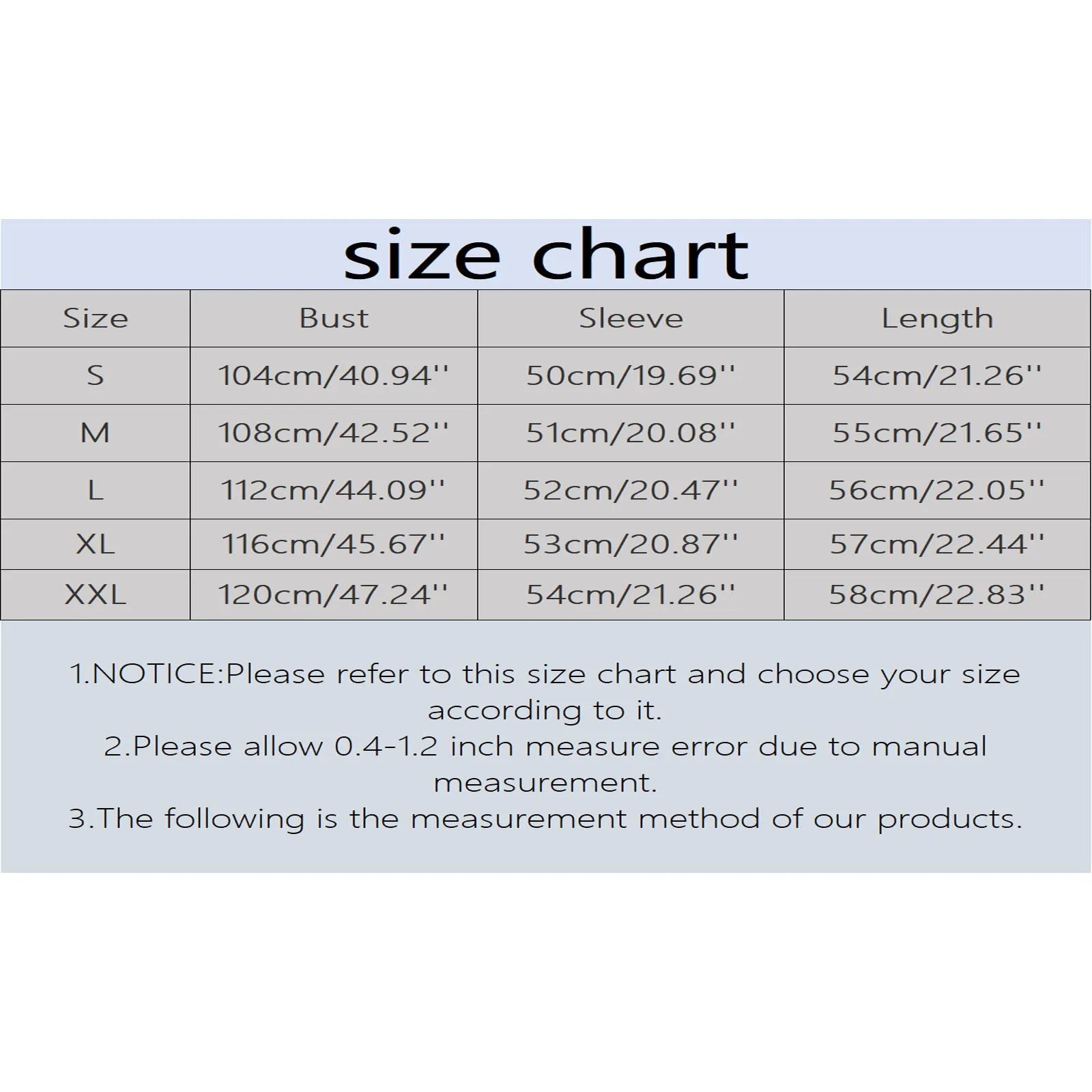 | Size:XXL | Bust:120cm/47.24'' | Sleeve:54cm/21.26'' | Length:58cm/22.83'' |