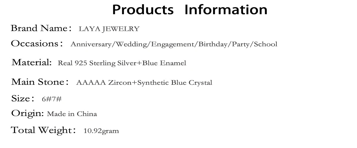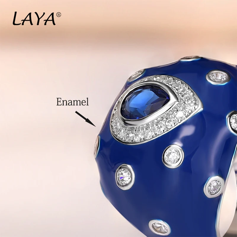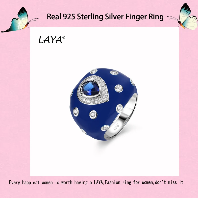 LAYA Blue Sapphire Ring For Men Women Retro Shinning Zircon Synthetic Crystal 925 Sterling Silver Classic Original Jewelry