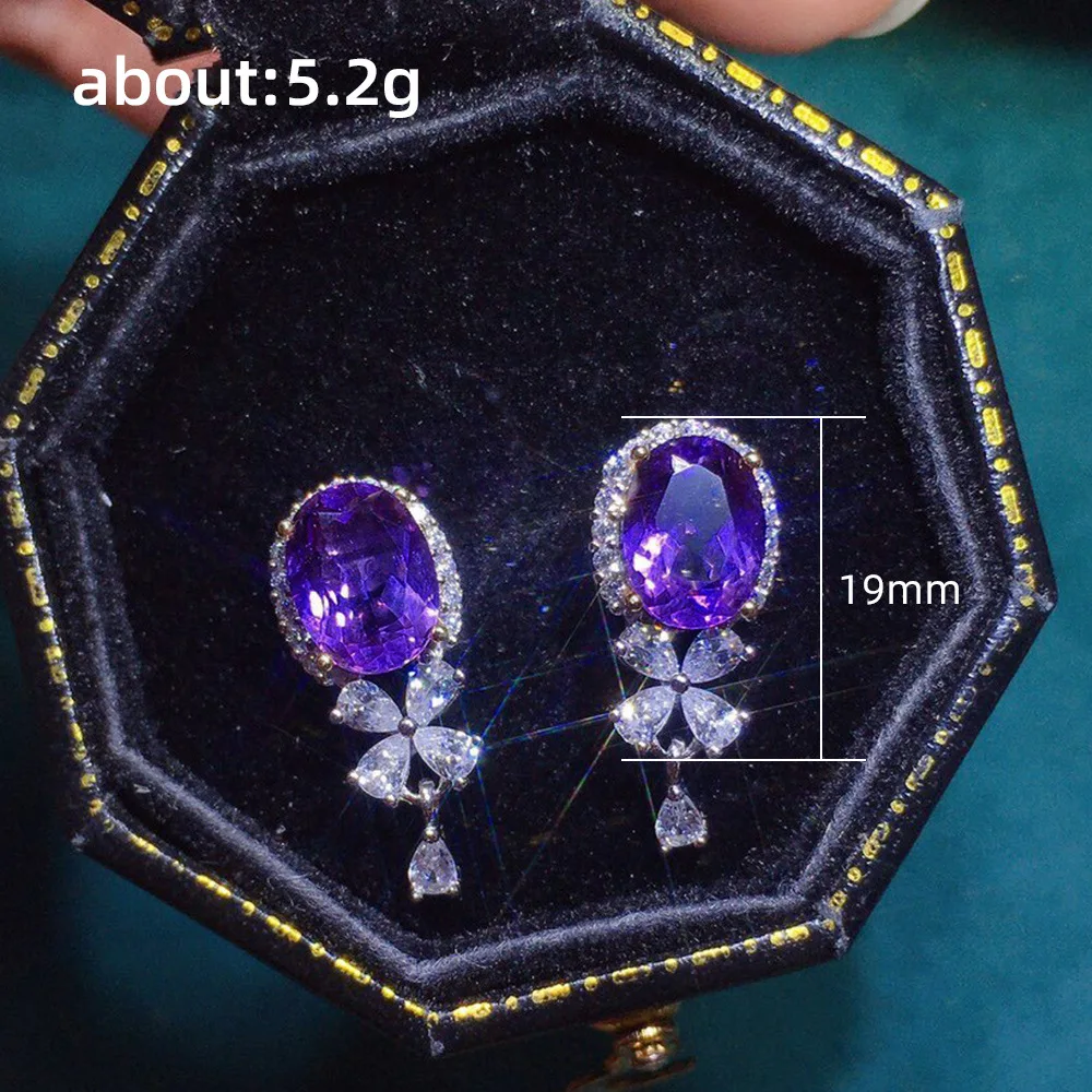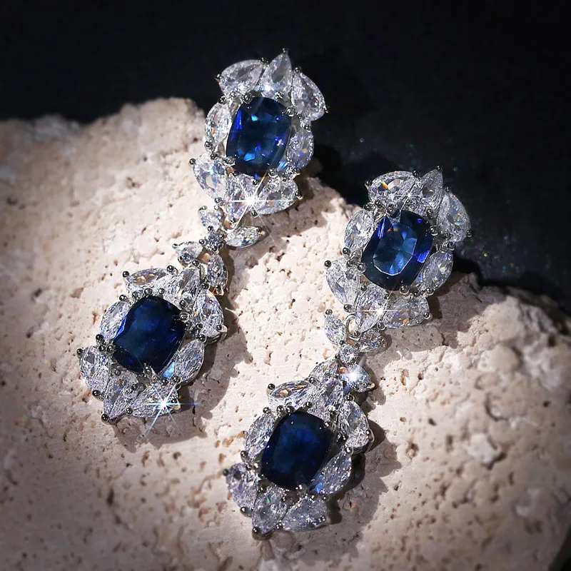 Luxury Square Purple Cubic Zirconia Crystal Earrings for Women New FashionExquisite Fashion Gold Color Dangle Wedding Jewelry