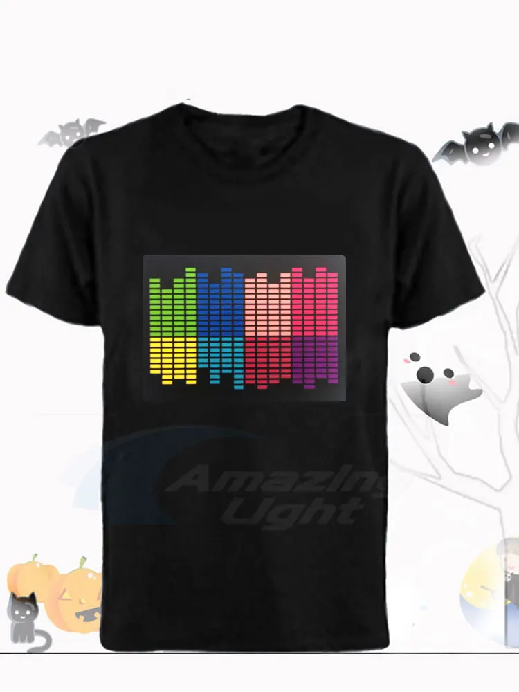 Popular Sound Active Equalizer El T-shirt Equalizer Light Up Down Led Tshirt Flashing Music Activated Led T Shirts Men Women Tee